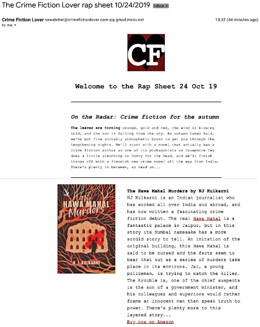 That is why it was gratifying that a popular US site like Crime Fiction Lover mentioned my book